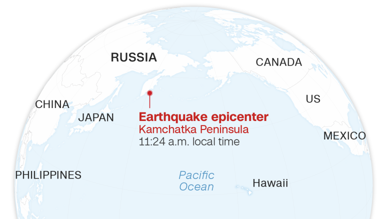 ရုရှားနိုင်ငံ အရှေ့ဘက် ကမ်းရိုးတန်းကျွန်းဆွယ်အနီးမှာ ပြင်းအား ၈ ဒသမ ၈ အဆင့်ရှိတဲ့ အင်အားပြင်း ငလျင်လှုပ်ခတ်ခဲ့ပါတယ်။