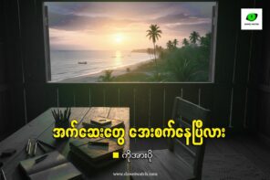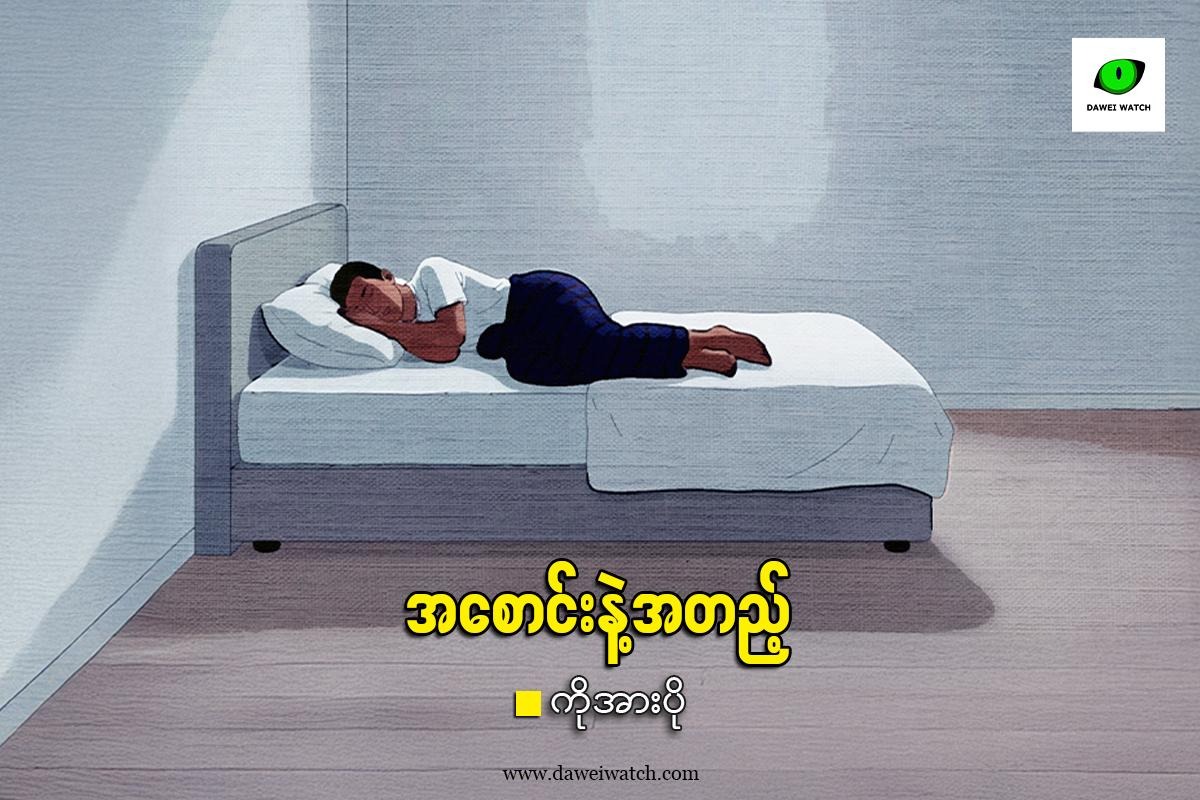 မျက်နှာကျတ်ပေါ်က တကျွတ်ကျွတ် အိမ်မြောင်စုပ်ထိုးသံကြားရတယ်။ ကြက်တွန်သံခပ်တိုးတိုးကြားတယ်။ အိပ်ရာပေါ်မှာ ဘေးတစ်ဘက်စောင်းလိုက်တယ်။ ကိုယ် ပက်လက်တည့်တည့် မအိပ်တတ်ဘူး။ ။