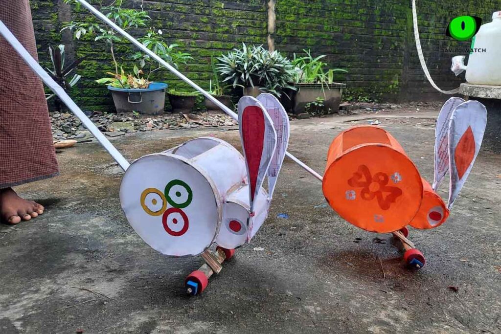 အဆိုပါလက်တွန်းမီးအိမ်များမှာ ဝါးနှင့် ဆီစိမ်စက္ကူကိုအသုံးပြုပြီး ချိုးရုပ်၊ ဆင်ရုပ်၊ ယုန်ရုပ်၊ လိပ်ပြာရုပ်များအဖြစ် ပုံဖော်ကာ LED မီးလုံးတပ်ဆင်ပြီး ဘီးတပ်က လက်ဖြင့်တွန်းရခြင်းဖြစ်သည်။