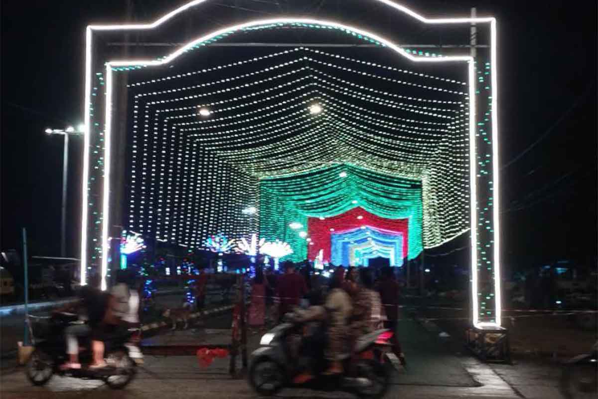 ကွန်ကရစ်ခင်းထားသော ကမ်းနားလမ်းတစ်ခြမ်းရှိ နေရာအနည်းငယ်ကို နိုင်လွန်ကတ္တရာခင်းကာ ပေ ၁၂၀၀ ခန့်ကို လျှပ်စစ်မီးသီးများဖြင့် အလှဆင်ထားခြင်းဖြစ်သည်။