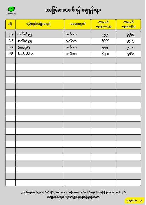 ထားဝယ်ဈေးကွက်အတွင်း ယခုသီတင်းပတ်တွင် ဆန်ဈေးနှုန်းများ မြင့်တက်ခဲ့ပြီး စားသုံးဆီဈေးနှုန်းမှာမူ တည်ငြိမ်နေကြောင်း သိရသည်။