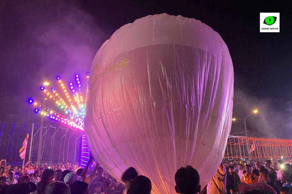 မီးပုံးပျံများတွင် မြတ်စွာဘုရားရုပ်ပုံ၊ ထားဝယ်ဒေသက ထင်ရှားသည့် မီးပုံးပျံ ဦးကျော်ရင် ရုပ်ပုံနှင့် အလှချိတ်မီးပုံးငယ်များ ချိတ်ဆွဲလွှတ်တင်ခဲ့ကြခြင်းဖြစ်သည်။