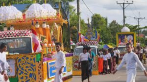 ရွာသူကြီးအပါအဝင် ကားပေါ်လိုက်ပါလာသူများအားလုံး “ဘုံကထိန် ၂၅၆၈” ဟု စာတမ်းရိုက်နှိက်ထားသော အင်္ကျီဆင်တူကို ဝတ်ဆင်ထားကြကြောင်း သတင်းအရသိရသည်။