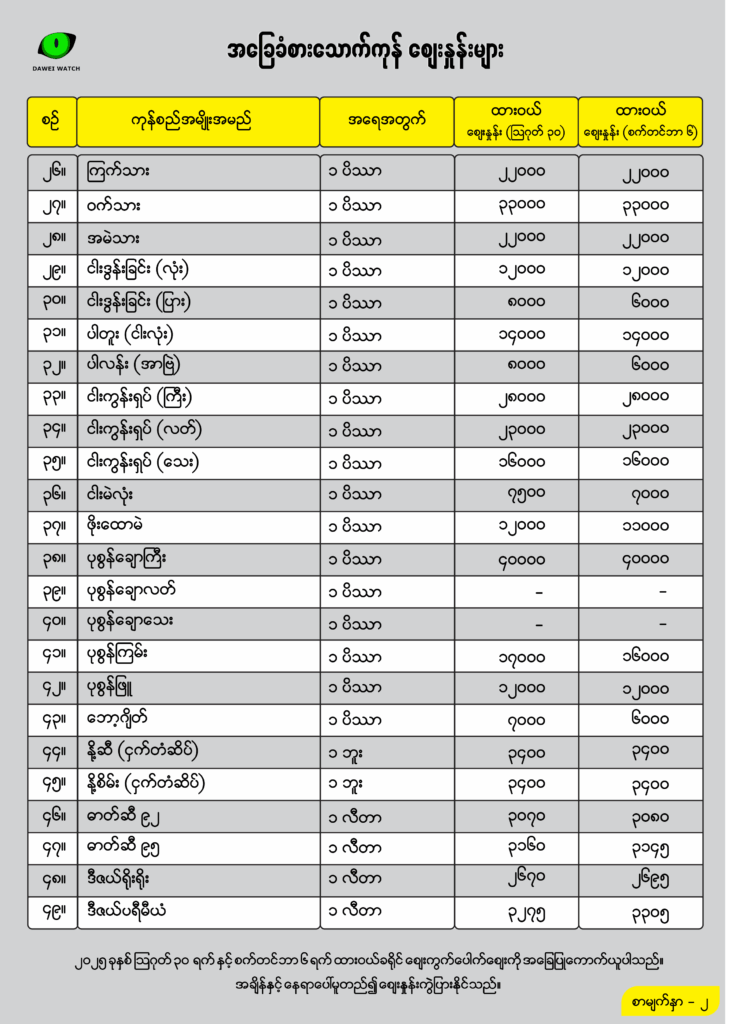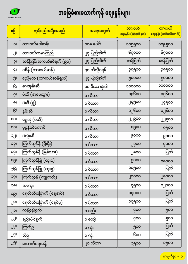 ပြည်တွင်းထုတ်စားသုံးဆီနှင့် ရေထွက်ကုန်ပစ္စည်းများများမှာ ဇယားပါဈေးနှုန်းများအတိုင်း ဈေးငြိမ်နေသည်ကို တွေ့ရှိရမည်ဖြစ်သည်။