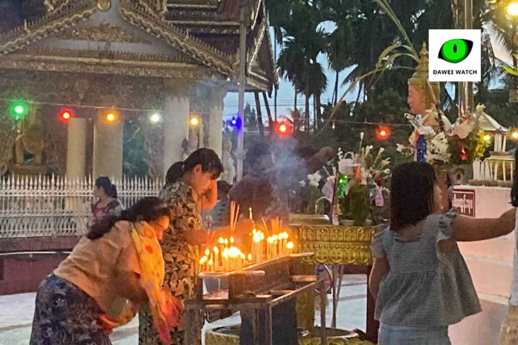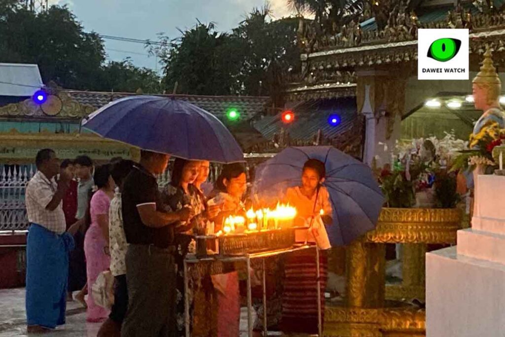 ထားဝယ်မြို့ ရွှေတောင်စားစေတီနှင့် လောကမာရဇိန်ဘုရားကြီးတို့တွင် ယနေ့ သီတင်းကျွတ်လပြည့် (အောက်တိုဘာလ ၆ ရက်) ညနေပိုင်း၌ မိုးရွာနေသော်လည်း ဘုရားဖူးလာသူများဖြင့် စည်ကားနေသည်။