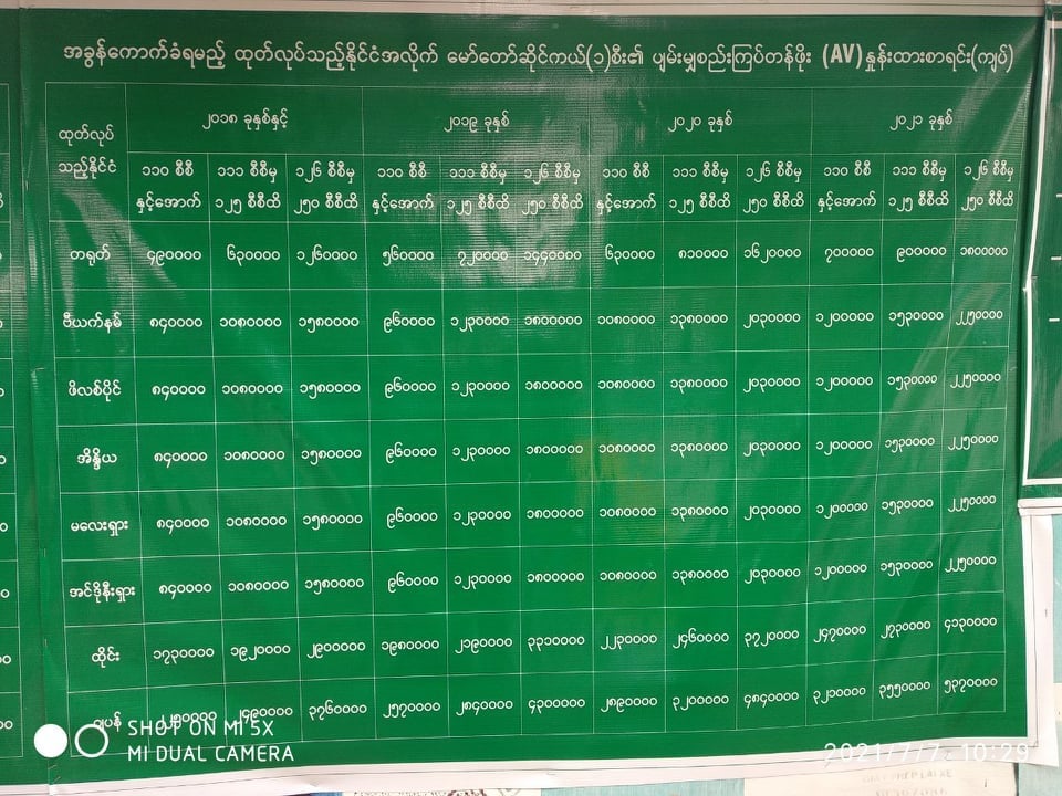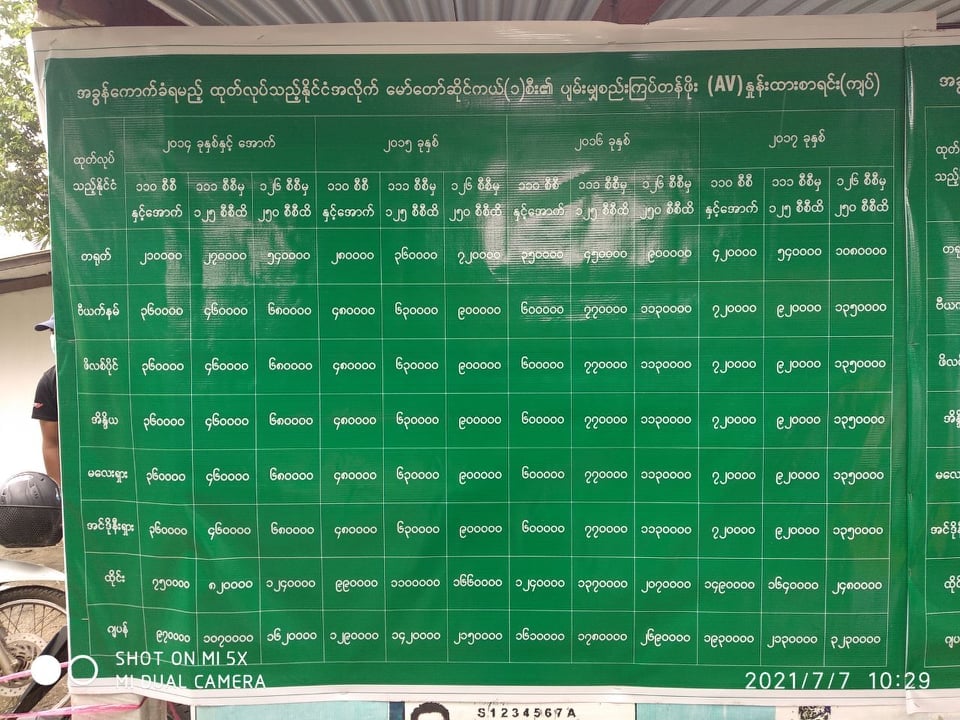 ကောက်ခံမည့်နှုန်းထားများကို ဓာတ်ပုံတွင် ဖော်ပြထားသည်။ဆိုင်ကယ်လိုင်စင်အား ရုံးဖွင့်ရက်အတွင်း နံနက် ကိုးနာရီမှ ညနေ လေးနာရီခွဲအထိ လုပ်ဆောင်ပေးမည်ဖြစ်ပြီး ဆိုင်ကယ်အစီးရေ ကန့်သတ်ထားခြင်းမရှိကြောင်း ကညနဌာန တိုင်းဒေသကြီးဦးစီးမှူး ဦးအောင်နိုင်က ဆိုသည်။