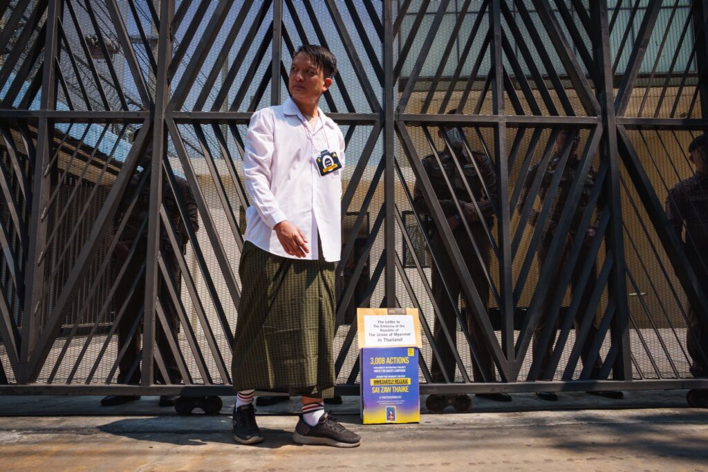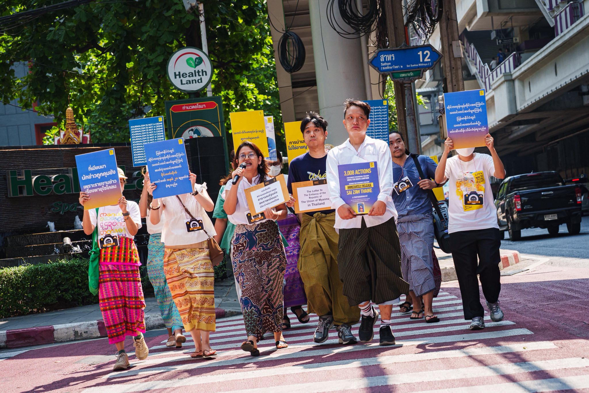 Amnesty International Thailand မှ လူ့အခွင့်အရေး လှုပ်ရှားသူများ၊ တက်ကြွလှုပ်ရှားသူများနှင့် ထိုင်းနိုင်ငံသားများက လုံချည်၊ ထဘီ၊ မြန်မာဝတ်စုံများကို ဝတ်ဆင်၍ သံရုံးရှေ့တွင် ဆန္ဒပြခဲ့ခြင်းဖြစ်သည်။