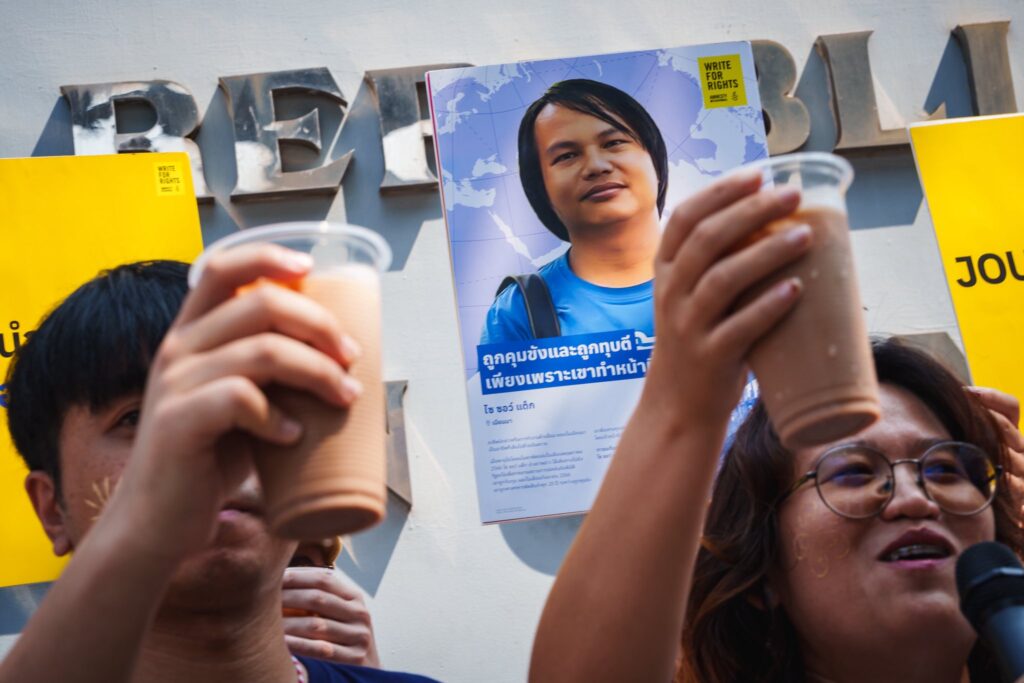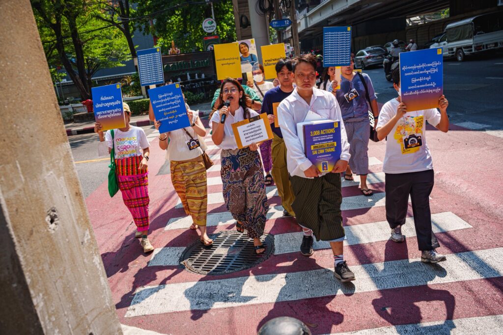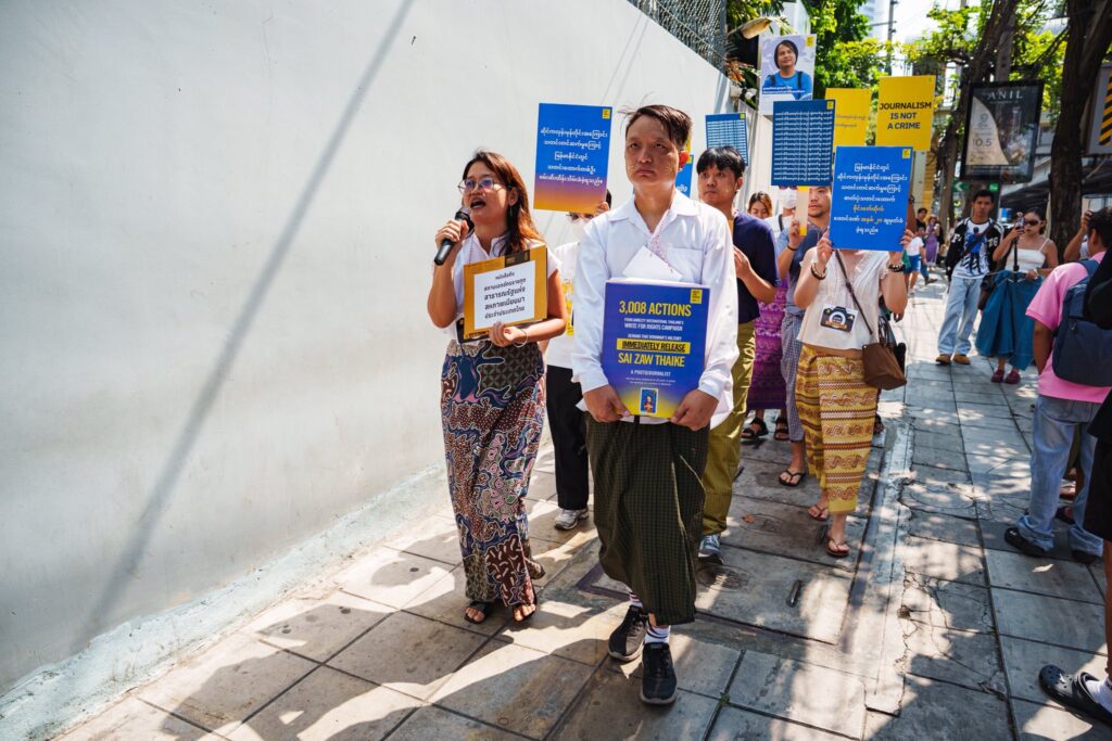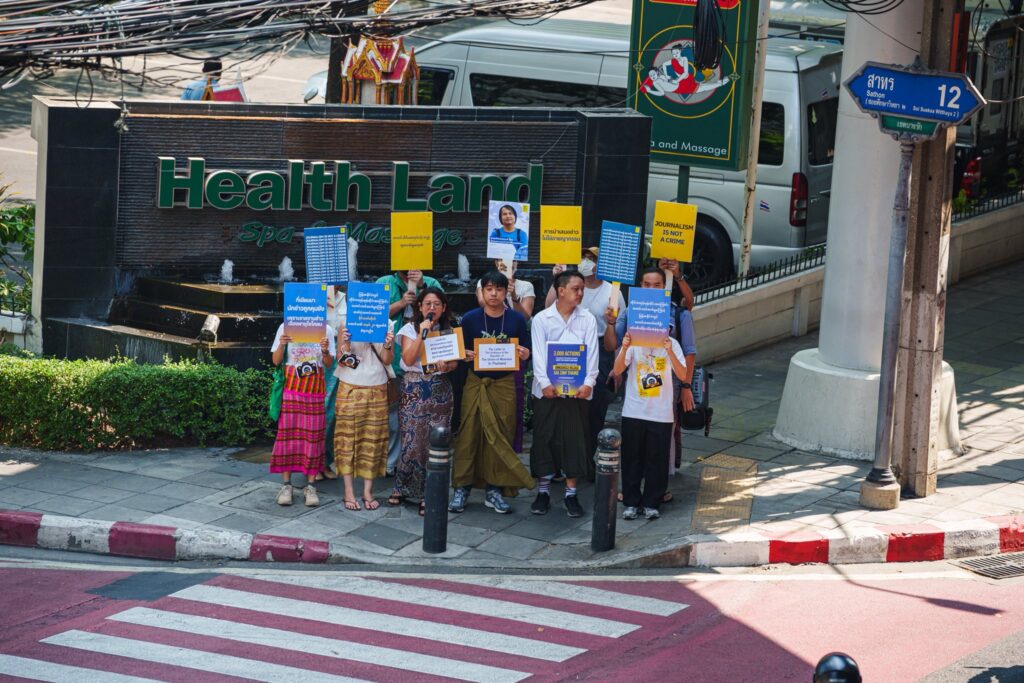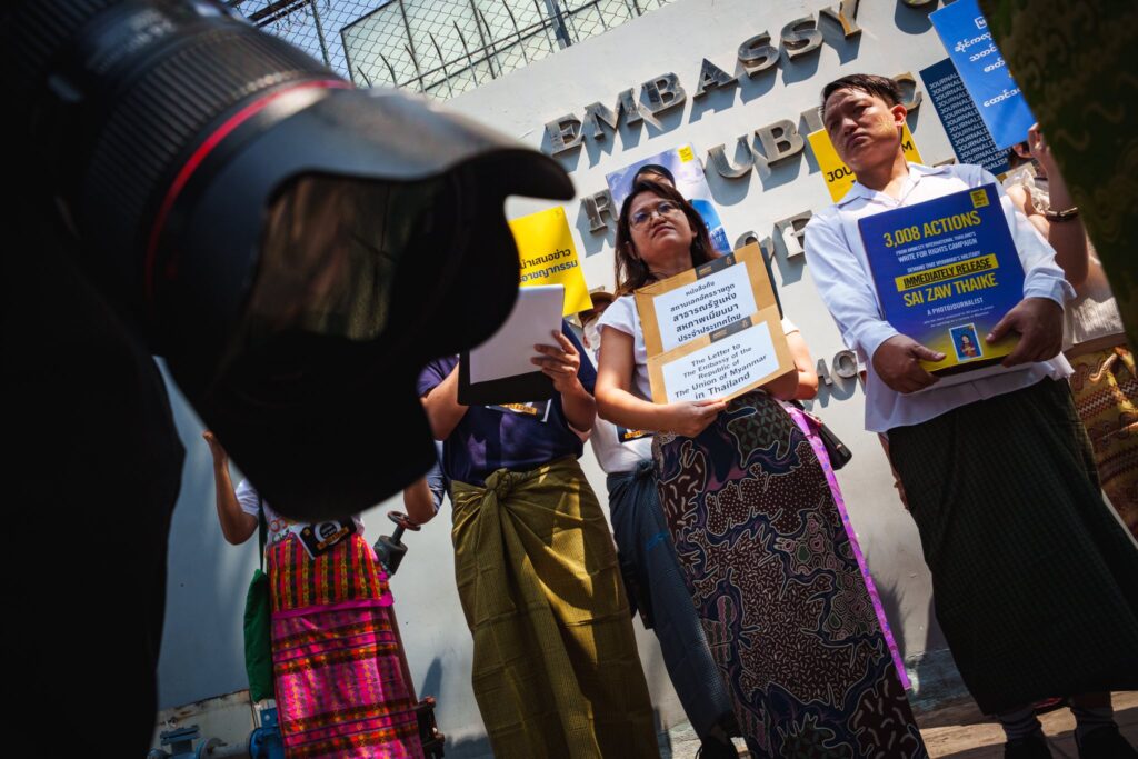 ထောင်ဒဏ် နှစ် ၂၀ ချမှတ်ခံထားရသော သတင်းထောက် ကိုစိုင်းဇော်သိုက်ကို ပြန်လွှတ်ပေးရန် Amnesty International Thailand အဖွဲ့၏ ဦးဆောင်မှုဖြင့် ထိုင်းနိုင်ငံသားများအပါအဝင် တက်ကြွလှုပ်ရှားသူများက သံရုံးရှေ့တွင် ဆန္ဒပြတောင်းဆိုခဲ့ခြင်းဖြစ်သည်။