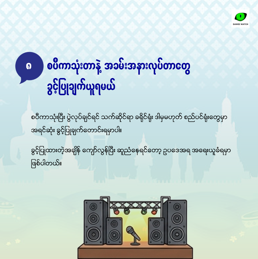 ပွဲတော်ရက်အတွင်းမှာ အန္တရာယ်ကင်းဖို့အတွက် ပြည်သူတွေ လိုက်နာရမယ့် စည်းကမ်းတွေကို ထုတ်ပြန်ထားပြီး၊ ချိုးဖောက်ရင်တော့ ထိထိရောက်ရောက် အရေးယူခံရမှာပါ။