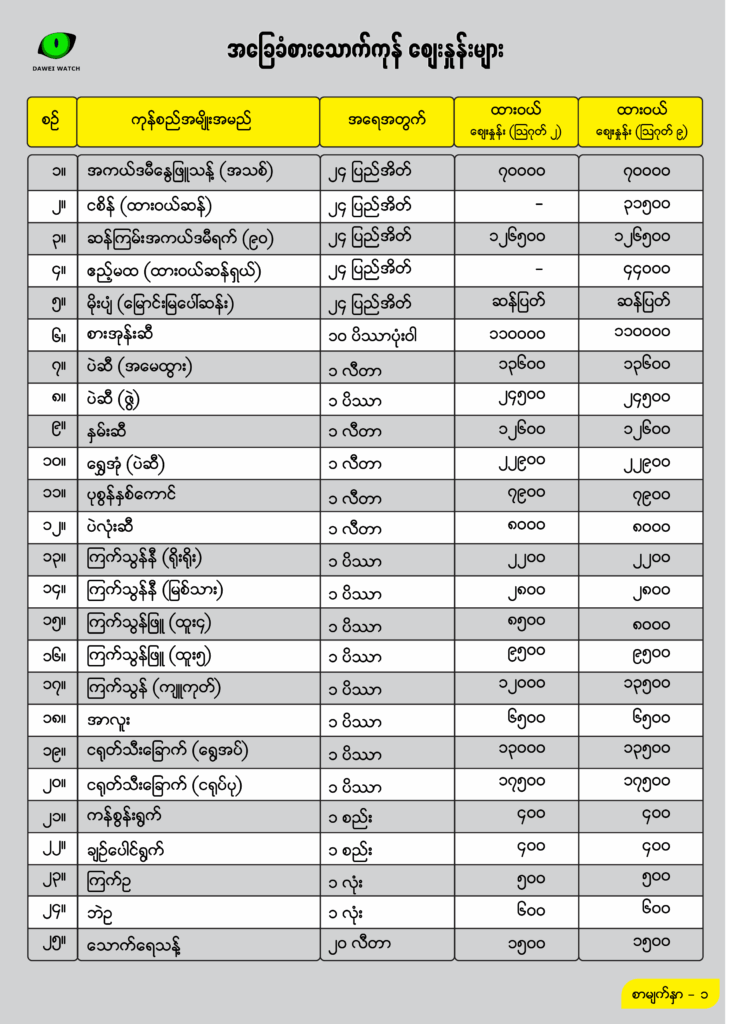 ထို့ကြောင့် ယခုသီတင်းပတ်တွင် ထားဝယ် ဒေသထွက် ဆန်ဈေးနှုန်းများကို ဖော်ပြပေးသွားပါမည်ဖြစ်ပါသည်။