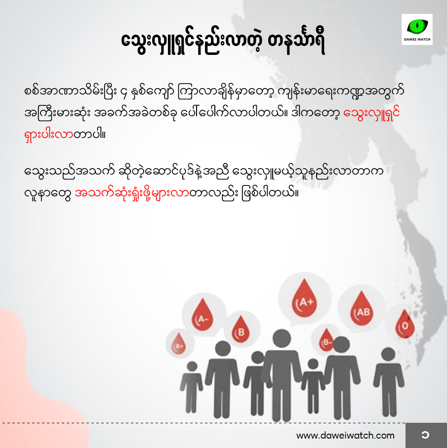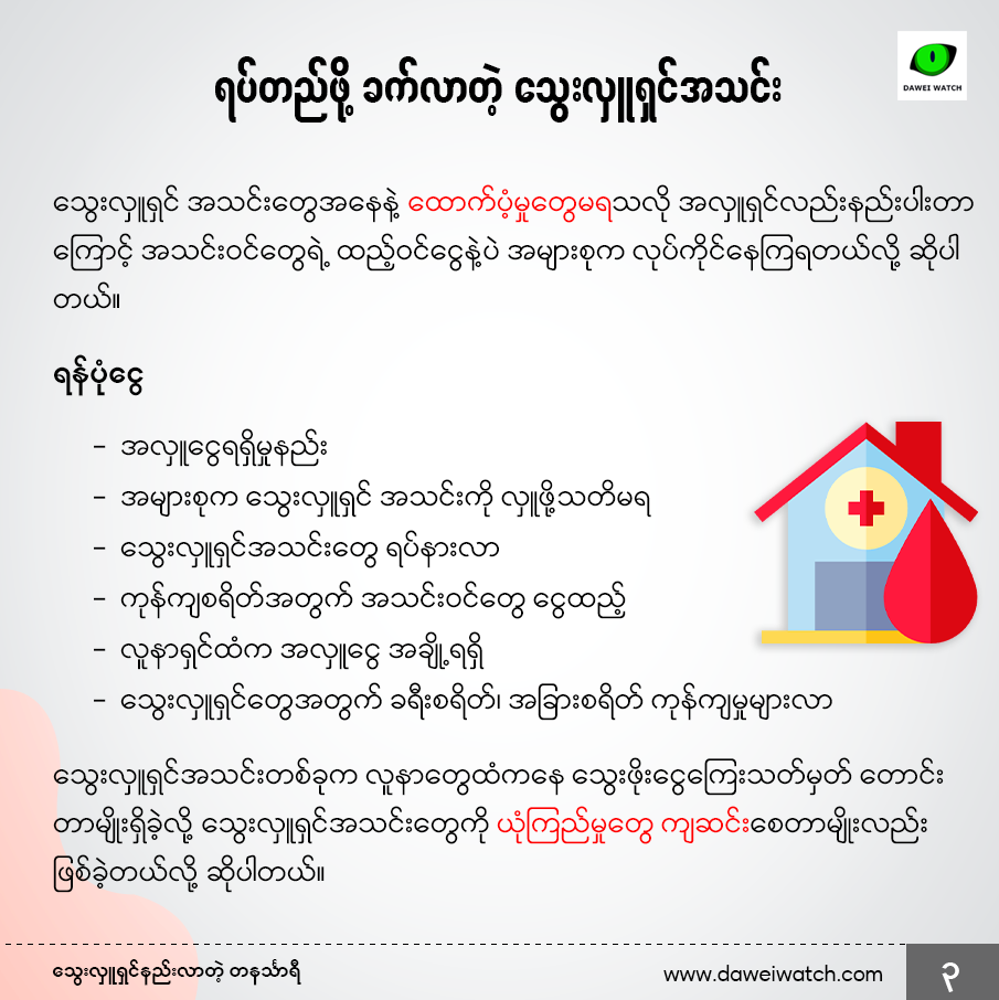 စစ်အာဏာသိမ်းပြီး ၄ နှစ်ကျော် ကြာလာချိန်မှာတော့ ကျန်းမာရေးကဏ္ဍအတွက် အကြီးမားဆုံး အခက်အခဲတစ်ခု ပေါ်ပေါက်လာပါတယ်။ ဒါကတော့ သွေးလှူရှင်ရှားပါးလာတာပါ။ သွေးလှူရှင်တွေရှားပါးလာရတဲ့ကြောင်းကို ဖော်ပြပေးလိုက်ပါတယ်။