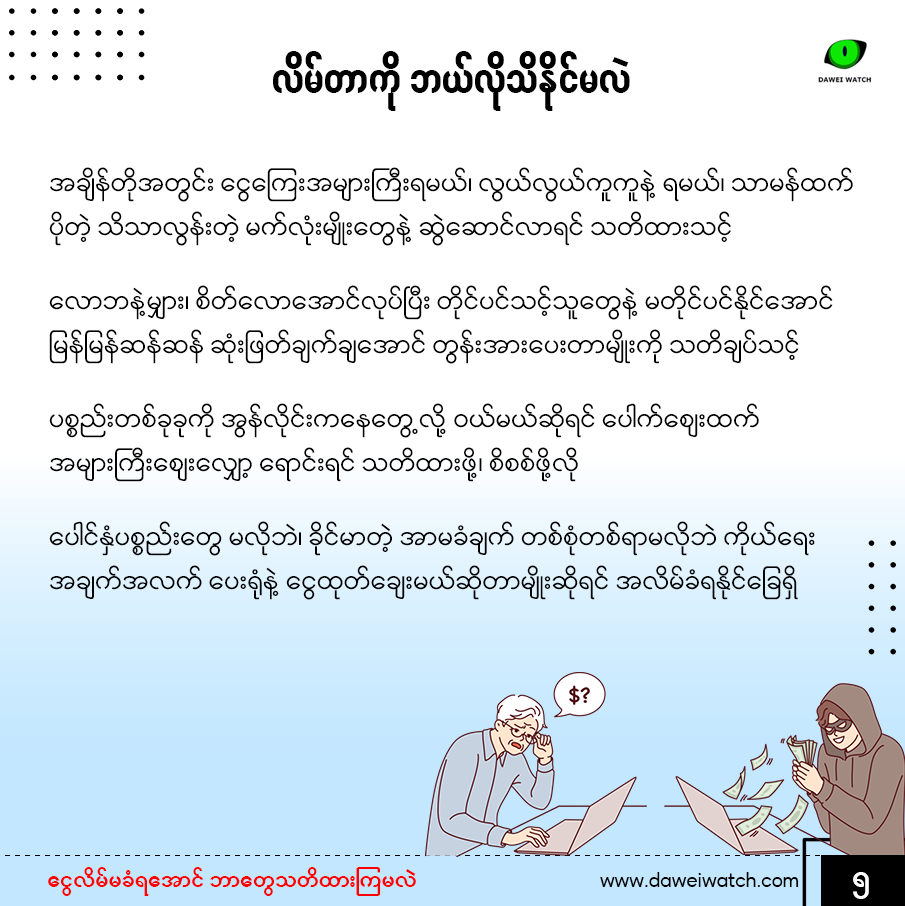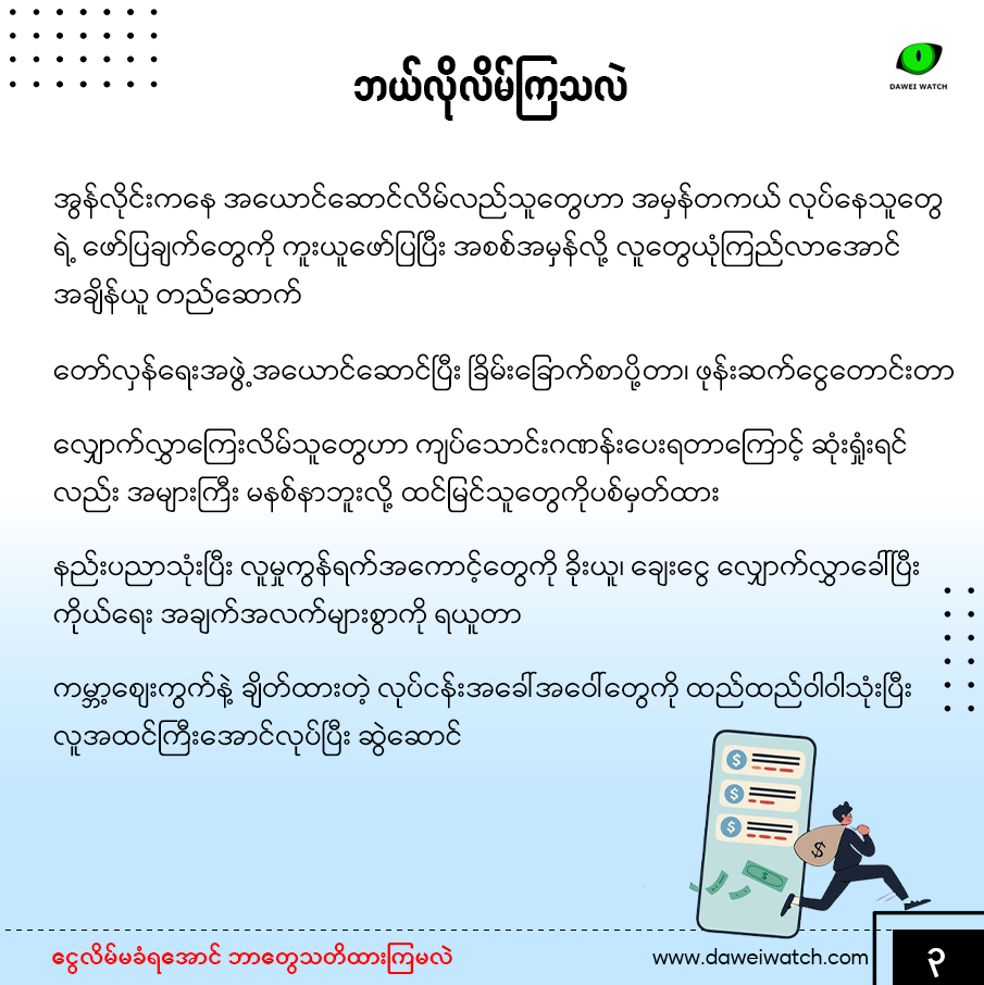 အာဏာသိမ်းမှုကြောင့် တရားဥပဒေ အစိုးမရချိန် ငွေလိမ်သူတွေ ခေါင်းထောင်လာကြပါတယ်။