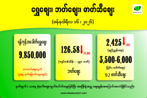 ဓာတ်ဆီဈေးမှာ ရည်ညွှန်းဈေးနှုန်းအပြင် မြေပြင်တွင် အမှန်တစ်ကယ် ဝယ်ယူသုံးစွဲရသည့် ပြင်ပဈေးကွက်ပေါက်ဈေးကိုပါ ပူးတွဲဖော်ပြအပ်ပါသည်။