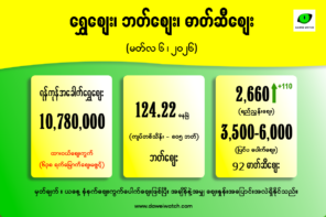 ရန်ကုန်ဈေးကွက်တွင် အခေါက်ရွှေတစ်ကျပ်သားလျှင် ၉၈၅၀၀၀၀ ကျပ် ဈေးဖွင့်ထားသည်။