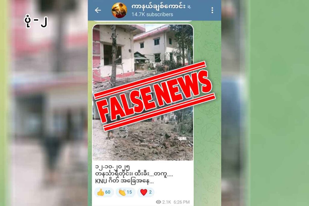 ကာနယ်ချစ်ကောင်း အမည်နဲ့ တယ်လီဂရမ်ချန်မှာ KNU ဂိတ်လို့ ရေးသားဖော်ပြထားတဲ့ ဓာတ်ပုံတွေကို Factchecking tool တွေနဲ့ စိစစ်ကြည့်ရာမှာတော့ ဒေသအခြေစိုက် သတင်းဌာနတွေက တကူရွာ မီးသတ်ရုံး ဗုံးကြဲခံရကြောင်း သတင်းဖော်ပြ ရာမှာ အသုံးပြုထားတဲ့ သတင်းဓာတ်ပုံ တွေ ဖြစ်တာကို စိစစ်တွေ့ရှိရပါတယ်။ ဓာတ်ပုံထဲမှာဆိုရင် မြန်မာနိုင်ငံ မီးသတ်တပ်ဖွဲ့ ဆိုင်းဘုတ်ကိုလည်း တွေ့ရပါတယ်။ ဓာတ်ပုံများကို အောက်တွင် ကြည့်ပါ ။