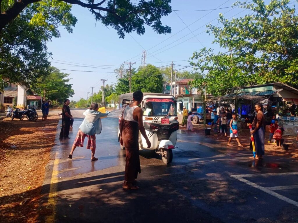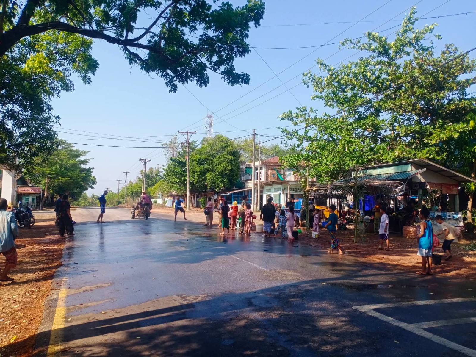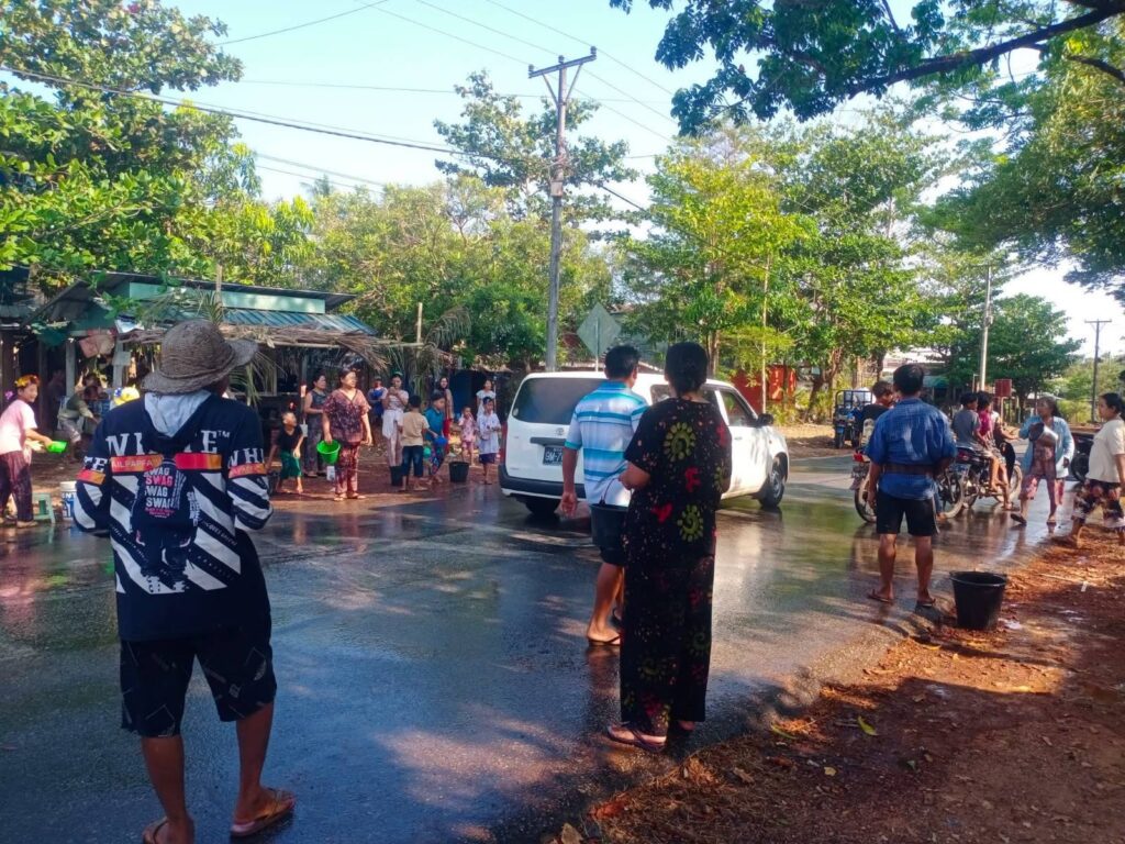 ယခုသင်္ကြန်ကာလမှာတော့ တိမ်းရှောင်နေကြတဲ့ရွာသားအချို့ ကျေးရွာကို ပြန်လာကြပြီး သင်္ကြန်ရေကစားခဲ့ ကြတာပါ။