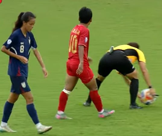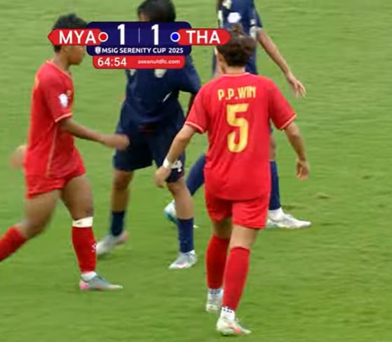 စန်းသော်သော် ကန်လိုက်တဲ့ဘောလုံးဟာ ထိုင်းနောက်ခံလူ ကျောနံပါတ် ၃ ရဲ့လက်ကို သွားထိခဲ့ပြီး ဒီဖြစ်စဉ်ကို ကွင်းလယ်ဒိုင်လူကြီးက ပင်နယ်တီ သတ်မှတ်ပေးလိုက်တာဖြစ်ပါတယ်။ ပွဲအပြီးမှာတော့ ပွဲစဉ်အလိုက်အကောင်းဆုံးကစားသမားဆုကို ဝင်းသိင်္ဂီထွန်းက ဆွတ်ခူးရရှိသွားခဲ့ပါတယ်။