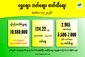 ဓာတ်ဆီဈေးမှာ ရည်ညွှန်းဈေးနှုန်းအပြင် မြေပြင်တွင် အမှန်တစ်ကယ် ဝယ်ယူသုံးစွဲရသည့် ပြင်ပဈေးကွက်ပေါက်ဈေးကိုပါ ပူးတွဲဖော်ပြအပ်ပါသည်။