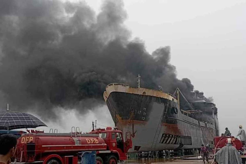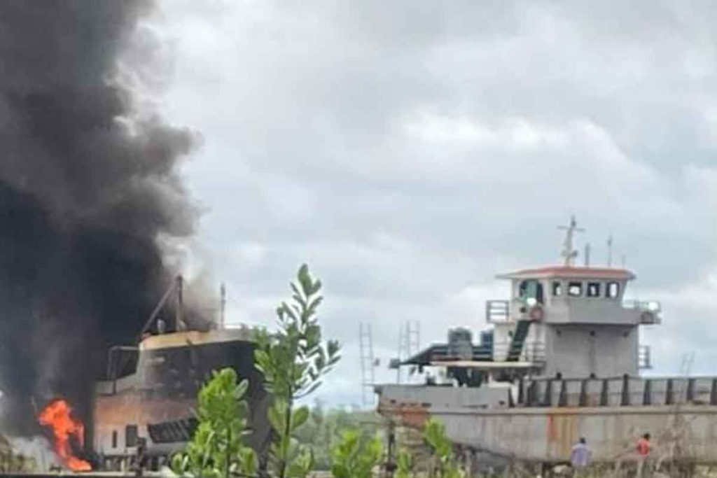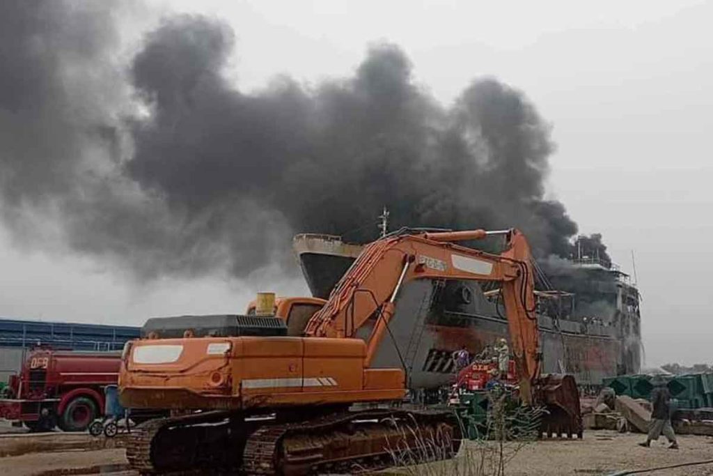 အဆိုပါ လှေဒေါက်လွန်းကျင်းရှိ အလျား ၁၉၈ ပေ၊ အနံ ၃၀ ပေ၊ ရေစူး(အနက်) ၁၄ ပေရှိ MV ရွှေဝတီ(သံခွံ)ကုန်တင်လှေ၏ သံထည်အား ဖြတ်တောက်နေစဉ် မီးပွားတို့သည် အင်ဂျင်ခန်းရှိ ဆီချိုး(ဆီချေး)များသို့ ကူးစက်ပြီး မီးလောင်ခဲ့ခြင်းဖြစ်ကြောင်း မီးသတ်ဦးစီးဌာနမှ သိရသည်။
