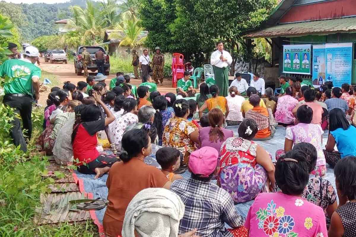 ကြံ့ခိုင်ရေးပါတီက ကိုယ်စားလှယ်လောင်းများ၏ မြိတ်ခရိုင် မဲဆွယ်ရေးခရီးစဉ်များအတွင်း စစ်အာဏာရှင်တပ်သားများက လက်နက်အပြည့်အစုံဖြင့် လုံခြုံရေးယူထားသည်ကို တွေ့ရသည်။