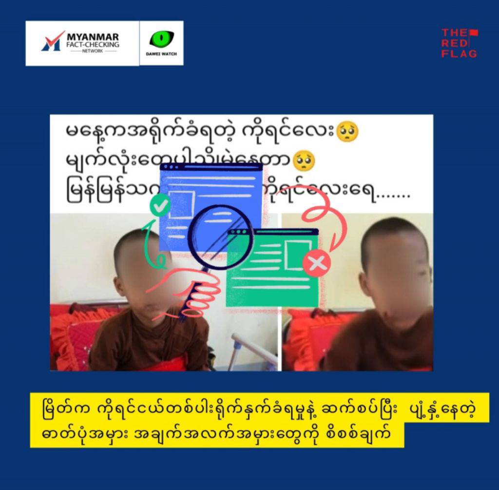 ကိုရင်ငယ်ကို ရိုက်နှက်ခဲ့တဲ့ ရဟန်းဖြစ်တယ်ဆိုပြီး လူမှုကွန်ရက်မှာ ပျံ့နေတဲ့ ရဟန်းပုံက မှားယွင်းနေတာကို စိစစ်တွေ့ရပါတယ်။