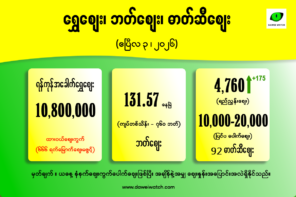 ဓာတ်ဆီဈေးမှာ ရည်ညွှန်းဈေးနှုန်းအပြင် မြေပြင်တွင် အမှန်တစ်ကယ် ဝယ်ယူသုံးစွဲရသည့် ပြင်ပဈေးကွက်ပေါက်ဈေးကိုပါ ပူးတွဲဖော်ပြအပ်ပါသည်။