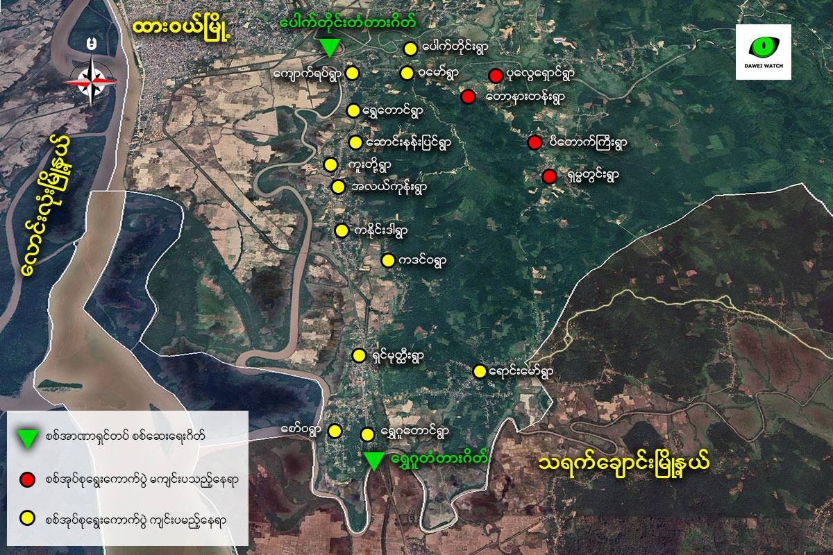 ခရစ္စမတ်နေ့ ဒီဇင်ဘာလ 25 ရက် ကတည်းကစ၍ ထားဝယ်မြို့အဝင် ပေါက်တိုင်းတံတား မှ ရွှေဂူတံတားအကြားရှိ ကျေးရွာများတွင် စစ်အာဏာရှင်တပ်သားများက တပ်ဖြန့်နေရာယူထားကြောင်း ဒေသခံများထံမှသိရသည် ။