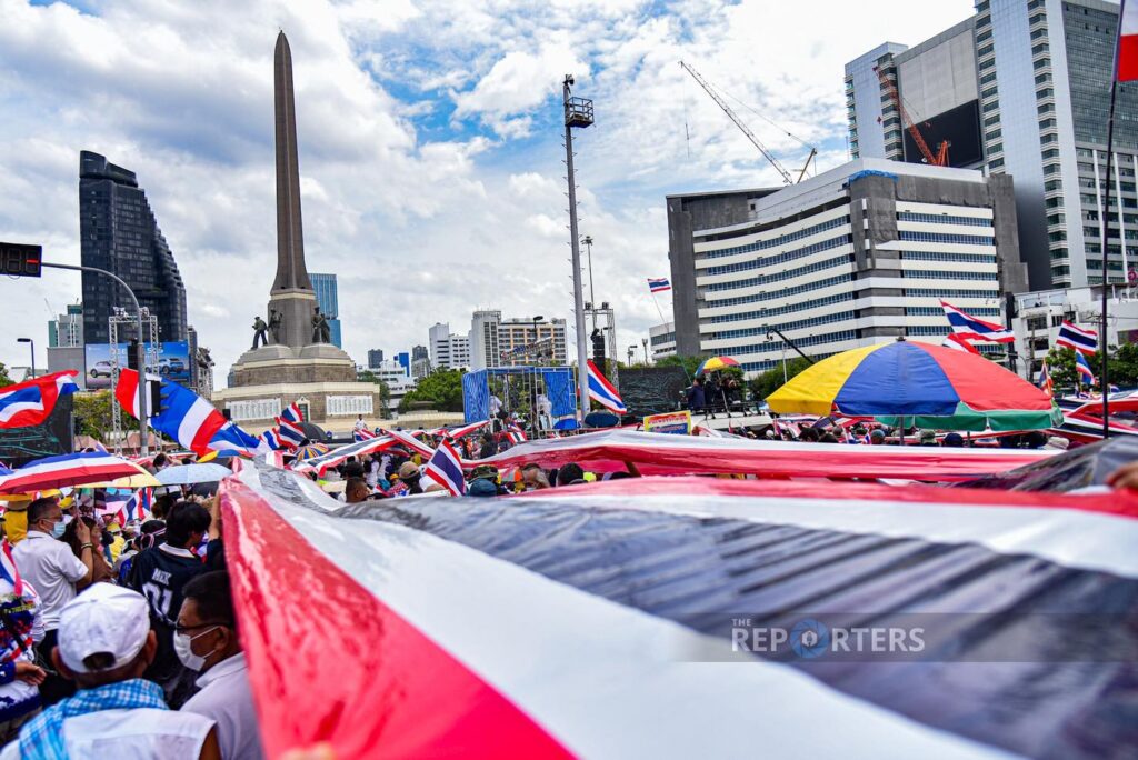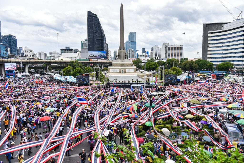 ထိုင်းနိုင်ငံ ဝန်ကြီးချုပ်ပေထုတ်တန် ရှင်နာဝပ် ရာထူးက နုတ်ထွက်ပေးရေး ယနေ့ ဇွန်လ ၂၈ ရက်နေ့တွင် ထိုင်းပြည်သူများက ဘန်ကောက်မြို့ အနုစာဝရီကျောက်တိုင် (Victory Monument) တွင် ချီတက်ဆန္ဒပြခဲ့ကြသည်။