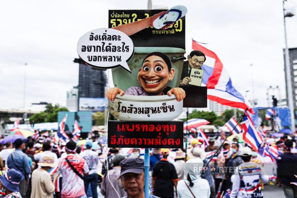 ထိုင်းဝန်ကြီးချုပ် ပေထုတ်တန် ရှင်နာဝပ်နှင့် ကမ္ဘောဒီးယား ဝန်ကြီးချုပ်ဟောင်း ဟွန်ဆန်တို့၏ ဖုန်းပြောဆိုမှု မှတ်တမ်း ပေါက်ကြားလာပြီးနောက် ထိုင်းဝန်ကြီးချုပ်ရာထူးက နုတ်ထွက်ပေးရန် ပြည်သူများက ဆက်တိုက်ဆန္ဒပြနေခြင်းဖြစ်သည်။