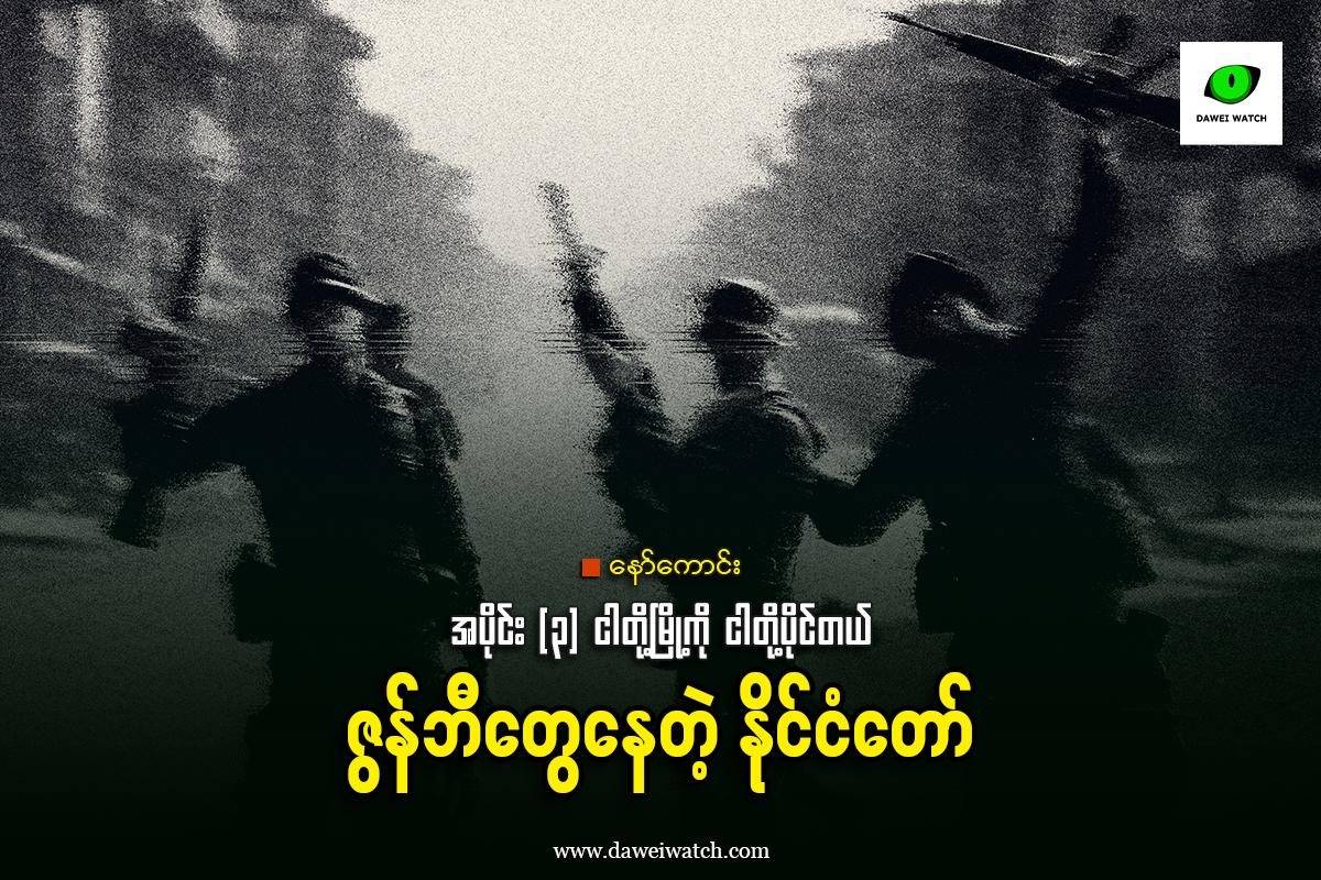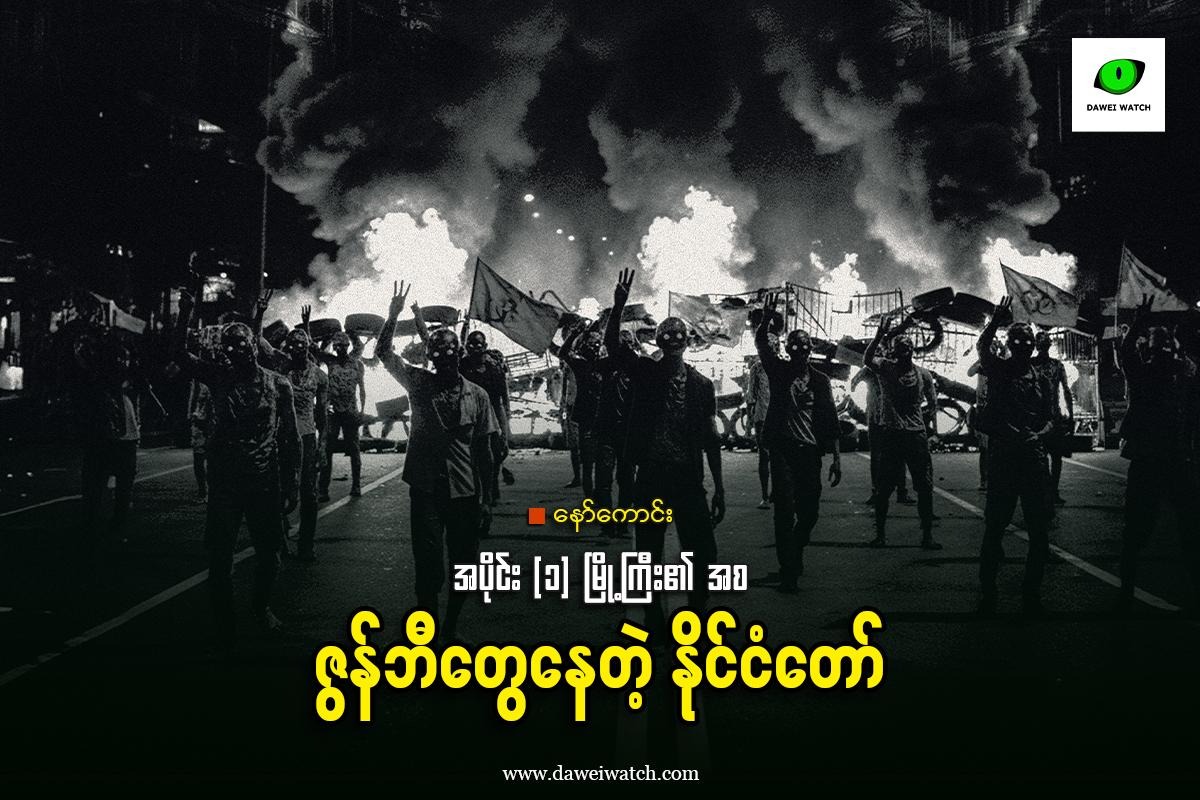 အပိုင်း (၃) ငါတို့မြို့ကို ငါတို့ပိုင်တယ် မြို့ကြီး၏ လုံခြုံ‌ရေး အဆင့်တို့မြှင့်လိုက်သည်။ တော်လှန်ရေး တပ်ဖွဲ့များသည် မြို့နှင့် အနီးဆုံးနေရာအထိ ထိုးစစ်ဆင် သိမ်းပိုက်လာနိုင်မှုကို မြို့အာဏာကို မတရားရယူထားသော အာဏာရှင်တို့မှာ ခေါင်းမီးတောက် ဖြေရှင်းရမည့် ပြဿနာဖြစ်ပေသည်။ “ငြိမ်ဝပ်ပိပြားရေး” ဟူသော ခေါင်းစဉ်ဖြင့် ဇွန်ဘီအဖြစ် သွပ်သွင်းခံခဲ့ရသော မြို့သူမြို့သားများသည် ပွဲတော်ရက်များတွင် အေးအေးဆေးဆေး ကခုန်နေခွင့် ရခဲ့သော်လည်း လက်ရှိအချိန်တွင် အာဏာရူးများက ဇွန်ဘီများကို သက်ရှိဒိုင်းလွှားများဖြင့်ရည်ရွယ်ပြီး ပြုလုပ်ခဲ့ခြင်းသာဖြစ်ကြောင်း သိသိသာသာ ထင်ရှားသော လုပ်ရပ်များကို ပေါ်ပေါ်ထင်ထင် ဆောင်ရွက်လာကြသည်။ ယခင်မြို့တွင်း၏ လမ်းမများထက်တွင် ဇွန်ဘီတွေ၏ ကခုန်ခြင်း ပွဲလမ်းသဘင်များဖြင့် စည်ကားနေသော်လည်း နေ့ခင်းဖက်မှာမူ မြို့ကြီးမှာ ဖုန်အလှိမ့်လှိမ့်ဖြင့်သာ ခြောက်ကပ် တိတ်ဆိတ်လျက်ရှိသည်။ ထိုလမ်းမများတွင်း မရိုးနိုင်အောင် မြင်တွေ့ရသော မြင်ကွင်းမှာ မြို့ထဲမှ […]