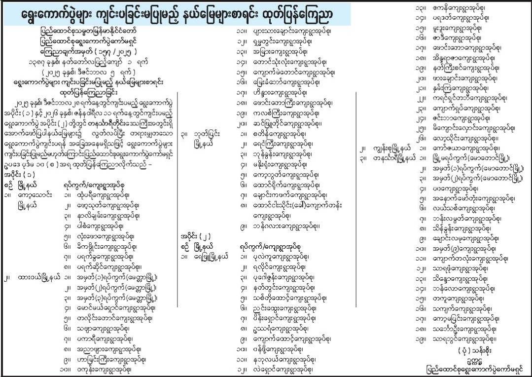 စစ်ကော်မရှင်က ပြုလုပ်မည့် ရွေးကောက်ပွဲ အပိုင်းတစ်နှင့် အပိုင်းနှစ်တွင် ရပ်ကွက်နှင့်ကျေးရွာအုပ်စု နှစ်ရာကျော်ပါဝင်သည့်အနက် ရှစ်ဆယ်ကျော်တွင် ရွေးကောက်ပွဲ ကျင်းပနိုင်ခြင်းမရှိကြောင်း ရွေးကောက်ပွဲ ကော်မရှင်ကထုတ်ပြန်သည်။ ဒီဇင်ဘာလ ၂၈ ရက်တွင်ကျင်းပမည့် ရွေးကောက်ပွဲအပိုင်းတစ်တွင် ထားဝယ်၊ မြိတ်၊ ဘုတ်ပြင်းနှင့် ကော့သောင်းမြို့နယ်တို့ပါဝင်ပြီး ရပ်ကွက်/ကျေးရွာအုပ်စု စုစုပေါင်း ၁၃၆ ခုရှိသည်။ ယင်းရပ်ကွက်/ကျေးရွာအုပ်စု ၁၃၆ ခုအနက် ၃၇ အုပ်စုတွင်ရွေးကောက်ပွဲကျင်းပနိုင်ခြင်းမရှိကြောင်း ထုတ်ပြန်ချက်အရသိရသည်။ ဇန်နဝါရီလ ၁၁ ရက်တွင် ဆက်လက်ကျင်းပမည့် ရွေးကောက်ပွဲ အပိုင်းနှစ်တွင်မူ ရေဖြူ၊ တနင်္သာရီ၊ ကျွန်းစုမြို့နယ်တို့ပါဝင်ပြီး ရပ်ကွက်/ကျေးရွာအုပ်စု စုစုပေါင်း ၉၂ အုပ်စုပါဝင်သည်။ အဆိုပါ ရပ်ကွက်/ကျေးရွာ ၉၂ အုပ်စုအနက် ၄၆ အုပ်စုတွင် ရွေးကောက်ပွဲကျင်းပနိုင်ခြင်းမရှိကြောင်း ရွေးကောက်ပွဲကော်မရှင်က ထုတ်ပြန်ထားသည်။ ရွေးကောက်ပွဲ အပိုင်းနှစ်ပိုင်း‌ပေါင်းလိုက်ပါက ရပ်ကွက်/ကျေးရွာအုပ်စု […]