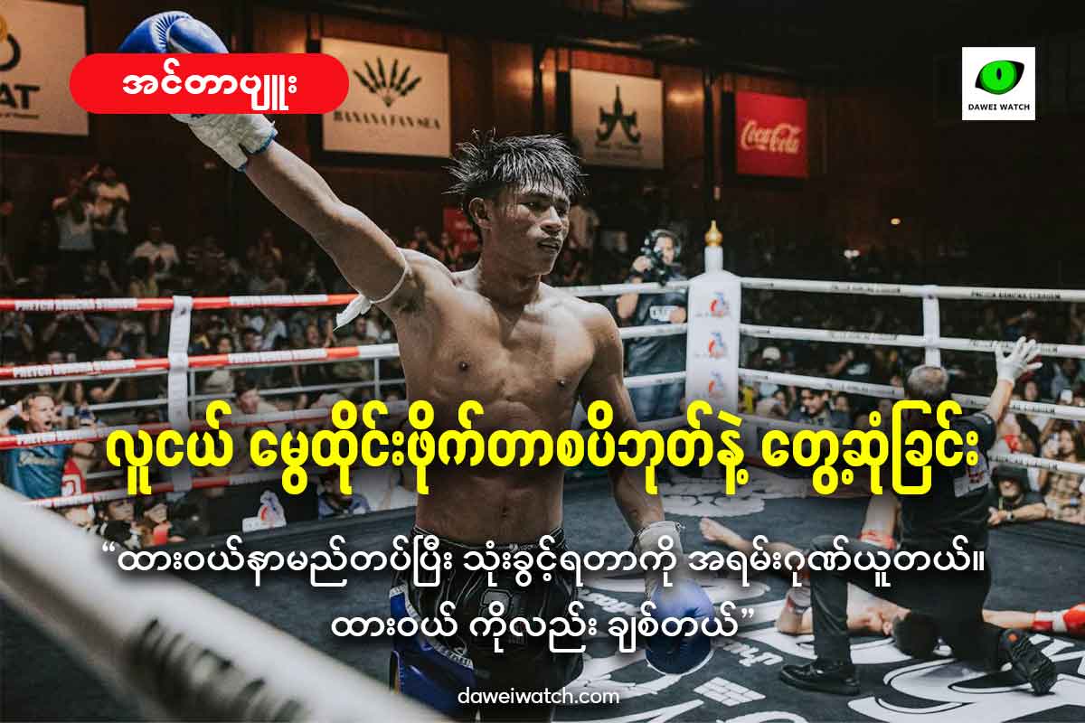 ထိုင်းနိုင်ငံတောင်ပိုင်း ကော့စမွေကျွန်းမှာ ဒီဇင်ဘာ ၂၉ ညကကျင်းပခဲ့တဲ့ လောင်းကြေးအမြင့်ဆုံး လက်ဝှေ့ပွဲမှာ ထားဝယ်သားဖိုက်တာလေး ပြိုင်ဘက်ကို အလဲထိုးနဲ့ အနိုင်ရခဲ့ပါတယ်။ သူအလဲထိုးခဲ့တာက အတွေ့အကြုံရင့်တဲ့ မွေထိုင်းဖိုက်တာ အသက် ၂၃ နှစ်အရွယ် ဂျာမဏီဖိုက်တာ စူပါဘန့်ခ်ပါ။ အသက် ၁၇ နှစ်အရွယ် ထားဝယ်သားလေးက ဝါရင့်ဖိုက်တာကို အလဲထိုးအနိုင်ယူသွားတာကြောင့် လက်ဝှေ့ဝါသနာရှင်တွေအကြား စိတ်ဝင်စားစရာ ဖြစ်လာခဲ့ပါတယ်။ နာမည်ကလည်း စပိဘုတ်ဆိုတော့ ဆန်းနေသလို အသက်ငယ်တဲ့ ဖိုက်တာတစ်ဦး ဖြစ်တာကြောင့်လည်း ပိုမိုစိတ်ဝင်စားဖွယ် ဖြစ်လာတာပါ။ ပိုင်ဇင်ကိုဆိုတဲ့ လောင်းလုံးမြို့နယ်၊ ကညုံကျွန်းကျေးရွာသားလေးက အခုတော့ စပိဘုတ်ရယ်လို့ လူသိများလာနေပါပြီ။ လက်ဝှေ့စထိုးတာ ၃ နှစ်လောက်မှာ လူသိများထင်ရှားလာတဲ့ စပိဘုတ်ကို Dawei Watch ကတွေ့ဆုံမေးမြန်း ဖြစ်ခဲ့ပါတယ်။ DW ။ ကော့စမွေမှာ ဒီဇင်ဘာ […]